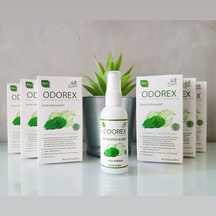 Larutan Odorex mengandung extract daun sirih (Piper betle) akan meresap dibawah kulit dan kemudian membunuh kuman,bakteri dan jamur penyebab bau. Melapisi dan menjaga agar bakteri penyebab bau tidak berkembang lagi dan juga mengurangi keringat sampai 40%.