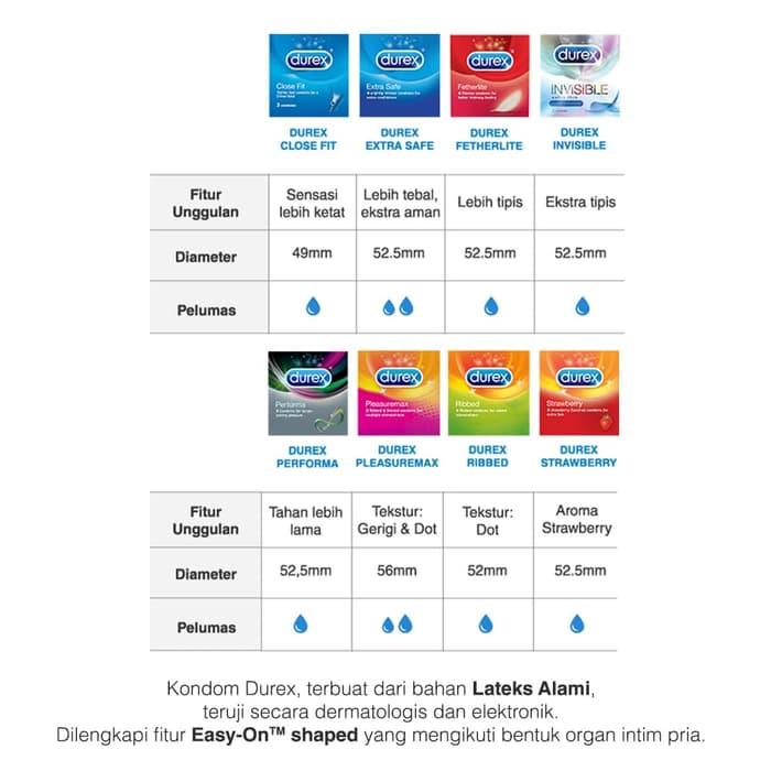 Kondom Durex Close Fit merupakan salah satu produk Kondom Durex yang di rancang khusus dengan lingkar kondom yang lebih kecil dari jenis kondom lainnya yaitu sekitar 49 mm, dimana kondom akan terasa lebih ketat dan kencang ketika digunakan sehingga anda akan merasakan sensasi berhubungan yang lebih bergairah bersama pasangan anda. Selain itu Kondom Durex Close Fit ini juga sangat efektif digunakan bagi anda yang memiliki ukuran organ vital yang cenderung kecil sehingga anda tidak perlu khawatir akan masalah kondom kebesaran.Spesifikasi Kondom Durex Close Fit :- Terbuat dari bahan dasar lateks alami- Berbentuk lurus, berwarna, dan berpelumas- Dilengkapi dengan ujung kondom yang berputing sebagai kantung sperma- Memiliki ukuran panjang 178 mm dan lebar nominal 49 mm dengan ketebalan 0.07 mm PRIVASI TERJAMIN