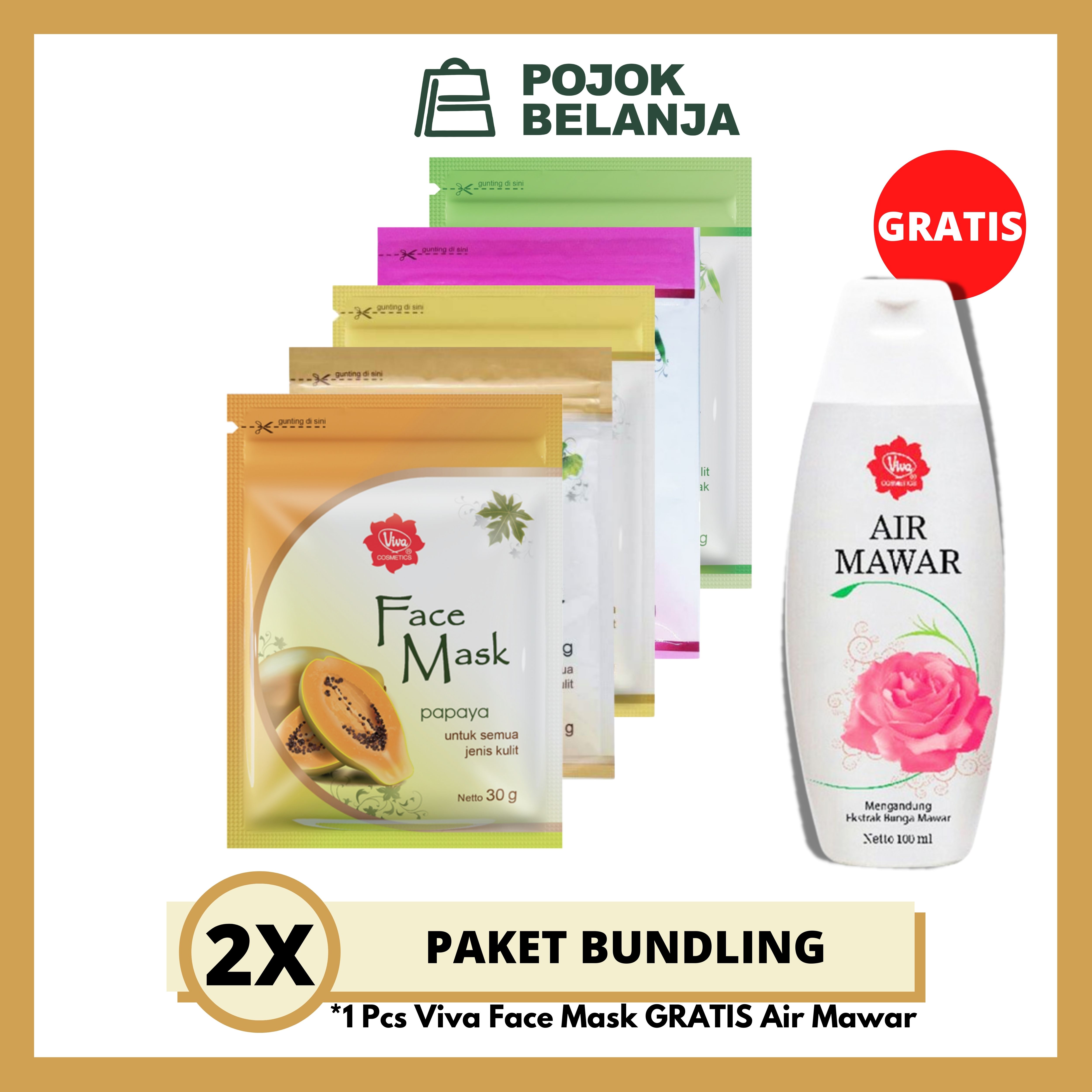 Paket Bundling 1Pcs Viva Face Mask Masker Bonus Viva Air Mawar 100 ml | Varian Bebas Pilih | Perawatan Wajah | masker muka glowing | Pojokbelanja