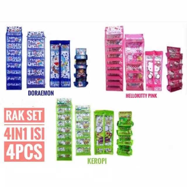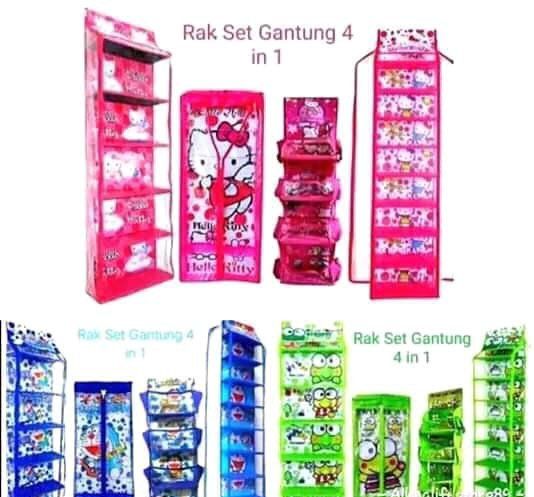 Paket Hemat 4 in 1 Rak Sepatu + Jilbab + Tas + Kosmetik Gantung Multifungsi Karakter Kartun Doraemon, Kero Keropi, Hello Kitty - Bayar Ditempat - COD