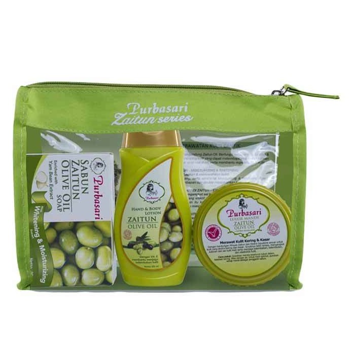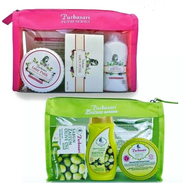 Paket Perawatan Purbasari Zaitun series & PUTIH SERIES Pouch / ( Lulur + Lotion + Sabun Batang ) - 3 Pcs / pojokbelanja / BISA BAYAR DI TEMPAT (COD)