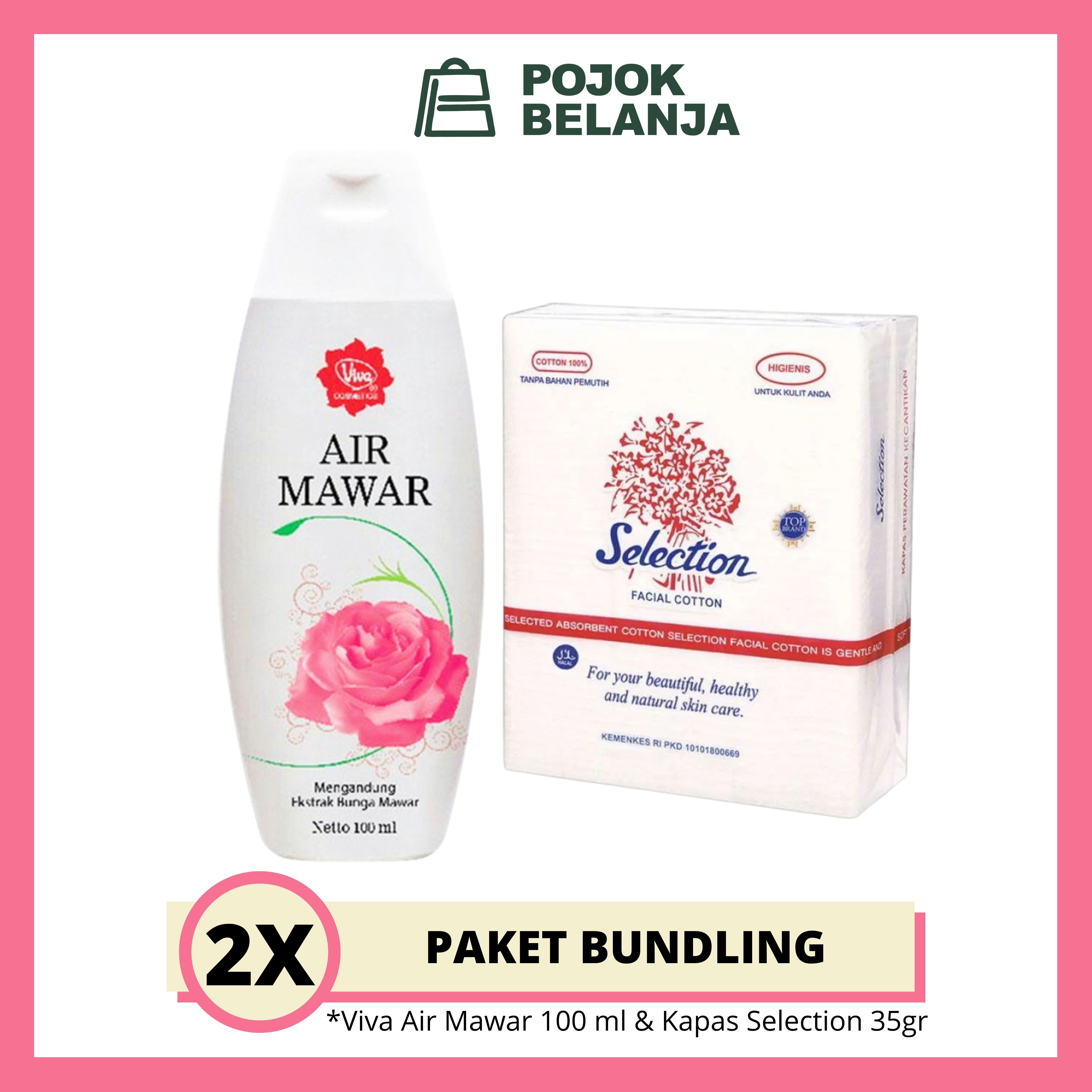 Paket Viva Air Mawar 100 ml & Kapas Selection 35 gr | Toner | Facial Cotton | Kapas Pembersih Wajah | Kapas Kecantikan | Pojokbelanja