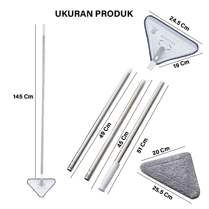 Pel Dinding Segitiga 360 Derajat bisa dipanjangin 1mtr - 2mtr.selain untuk pel dinding bisa juga untuk membersihkan kaca / lemari maupun lantai.High Quality Import Detail Produk :Ukuran :- Tiang : 50 - 100cm & 200cm- Kain : 19x16cmBahan : Aluminium + Kain MicrofiberWarna : Biru