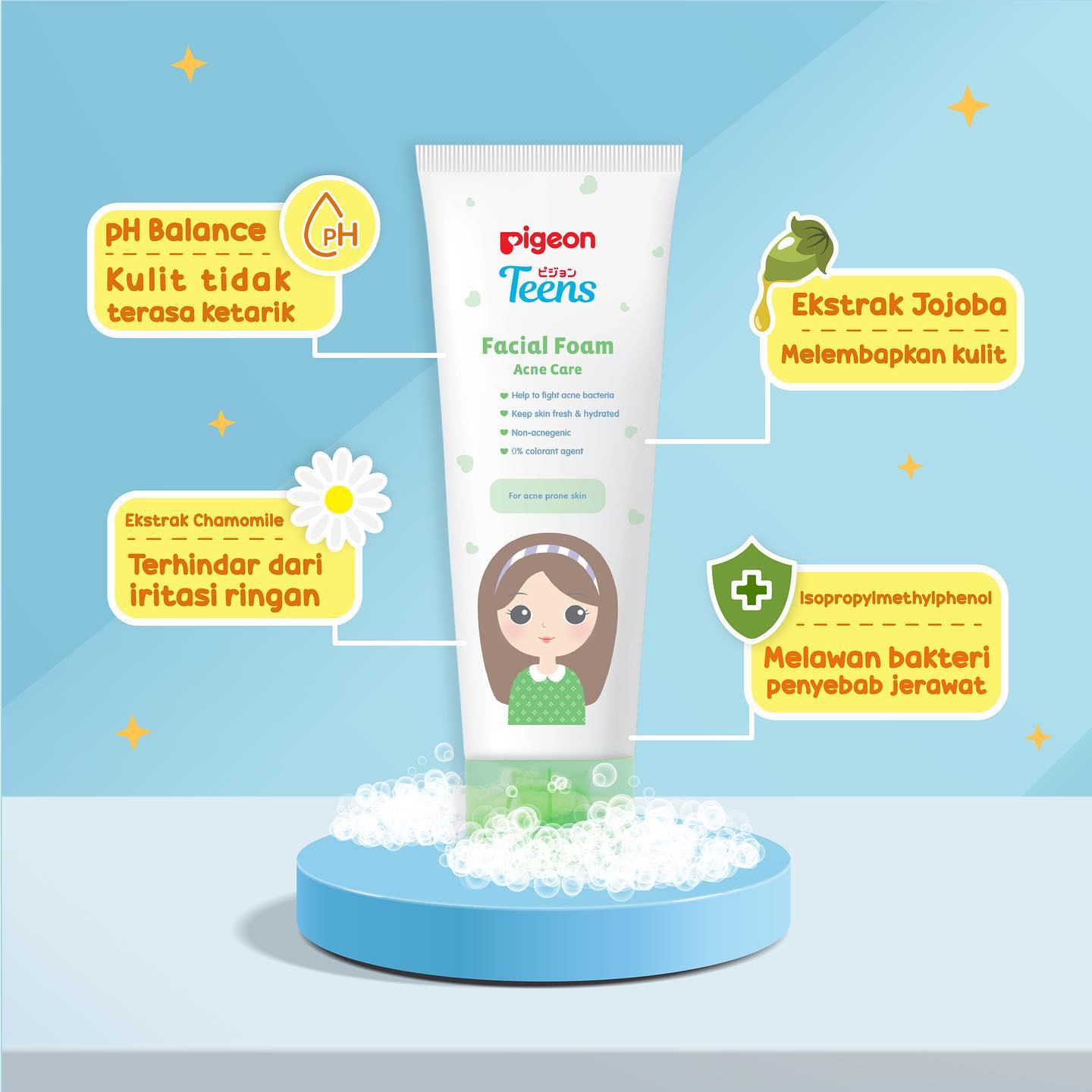 PIGEON Teens Facial Foam - Daily Mild | Acne Care | Deep Cleansing and Oil Control 100 g / Sabun Muka / Pembersih Wajah - Pojokbelanja
