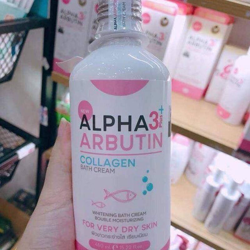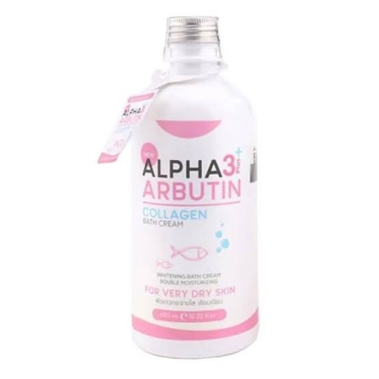 Alpha Arbutin 3+ Plus Collagen Bath Cream dengan Vitamin E dan Vitamin C dikombinasikan dengan kolagen dan bahan-bahan pemutih yang aman, memutihkan x 3 kali lebih banyak daripada mandi putih lainnya