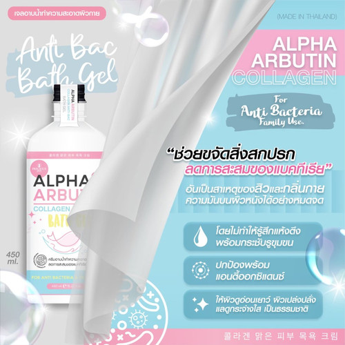 Kini HADIR New Alpha Arbutin Anti- BAc Bath Gel 450ml[ Original.ada barcode & Segel Tutup di kemasan ya guys ]Alpha Arbutin Collagen Anti-Bac Bath Gel [ NEW ]NEW inovasi terbaru dengan kandungan collagen yang lebih tinggi , sehingga memutihkan dan mencerahkan kulit10X Lebih Cepat, membunuh kuman dan membersihkan kuman serta bakteri yang membuat kulit kekeringanManfaat- Melindungi kulit dari radiasi sinar matahari- Membunuh kuman menjaga kulit tetap lebih sehat- Brightening 10x lebih efektif- Melembabkan Kulit secara merata- Menghilangkan kekeringan di kulit- Wangi super tahan lamaDisamping itu bahan2 diatas juga berfungsi utkMENCERAHKAN BEKAS LUKA DAN NODA di kulitMenghilangkan bekas garuk, bekas digigit nyamuk, alergiMenghambat pigmentasi kulit dan kemunculan flek flek hitam di kulitMengembalikan aura cerah kulit dan mengembalikan KULIT GOSONG akibat matahari.Cara Pemakaian:Step 1 Gunakan Secukupnya Sabun cair dan gosokkan kebadan hingga berbusa dan diamkan selama 3-4 menit Baru Dibilas bersihâ¤Aman bagi BUMIL dan BUSUItidak menyebabkan kulit keringtidak ketergantunganhasil dlm 2 mggu pemakaian rutinhasil permanenTIDAK ADA EFEK SAMPING