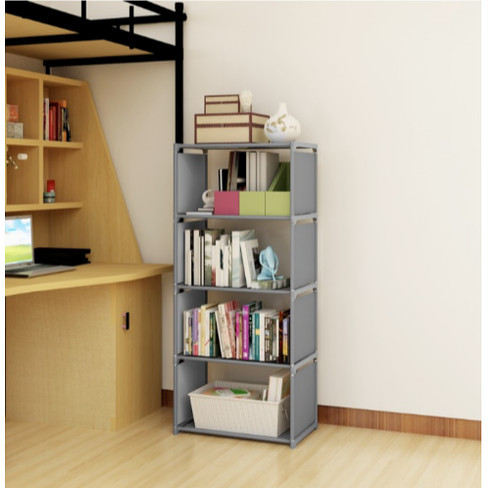 Rak Buku 5 Tingkat 4 Susun Serbaguna Lemari Portable Multifungsi Kamar - Abu-abu - Bayar Ditempat - COD