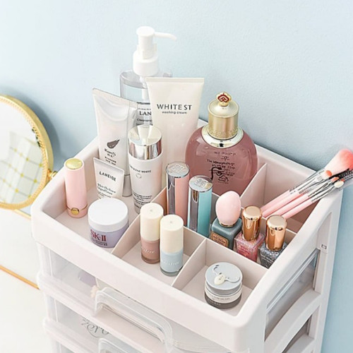 Deskripsi Produk:Bagi Anda para wanita tentu tak bisa dipisahkan dengan produk kosmetika yang menemani hari-hari Anda untuk tampil cantik menarik. Nah, terkadang produk-produk kosmetik serta alat-alat make up terlihat bertebaran begitu saja di atas meja rias. terlihat berantakan dan tidak nyaman dilihat. Nah, untuk mengatasinya Anda bisa mencari tempat penyimpan kosmetik untuk menata produk kosmetik Anda agar terlihat rapi, yakni rak alat make up. Rak kosmetik ini terbuat dari bahan dasar plastik yang memiliki banyak laci dan sekat. Jadi Anda bisa memisahkan berbagai produk kosmetik sesuai keinginan.Make Up Organizer ini juga memiliki banyak fungsi selain tempat make up, dapat juga menjadi tempat peralatan mandi, organizer di meja tulis, organizer makanan ringan.