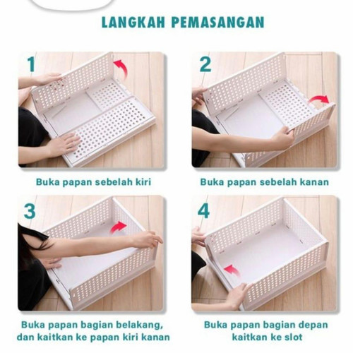 Rak Penyimpanan barang ini sangat cocok untuk Anda yang mempunyai barang banyak dengan space terbatas. Dapat menampung banyak barang dan dapat ditumpuk sehingga tampak lebih rapih dan hemat ruang. Cocok digunakan di dalam lemari sebagai rak tambahan, rak meja, rak dapur, rak ruang tamu, rak kamar mandi dll.Keunggulan Produk :- Bisa ditumpuk sebagai laci dan dapat ditarik .- Akses pengambilan dan penyimpanan lebih nyaman, rapih dan efisien. - Hemat tempat dan tampak lebih rapih terorganisir- Desain pattern berlubang, sehingga tidak lembap, anti bakteri dan anti-jamur- Dapat dilipat pada saat tidak digunakan sangat praktis, tidak makan tempat- Pemasangan dan pembongkaran simple dan mudah- Bahan material kokoh, kuat , lebih tahan lama