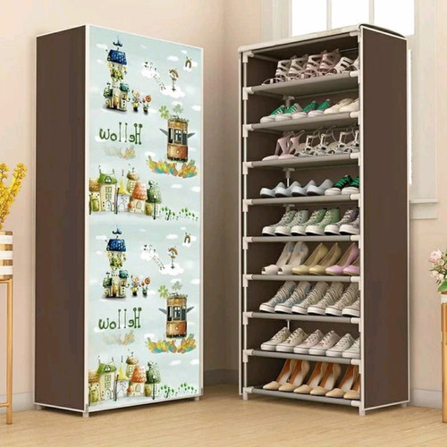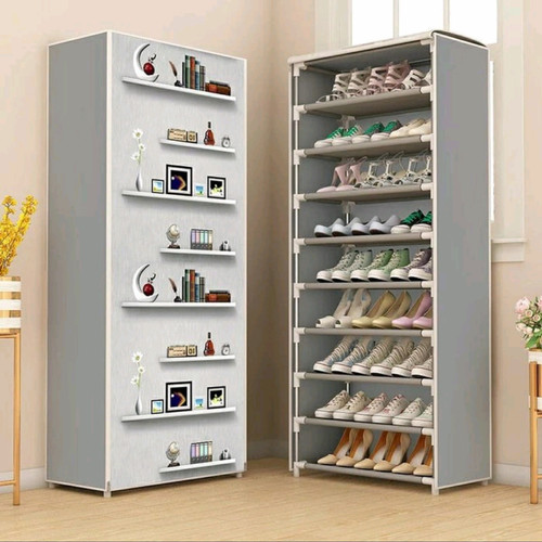 Rak Lemari Sepatu KAIN 10 susun / Tingkat 9 sekat + SarungHarap cantumkan pilihan motif di keterangan agar tidak di kirim randomUkuran : 10 TINGKAT 9 RUANGMaterial : Rangka besi yang kokoh (bisa diadu), With Non-Woven fabric dust coverKeunggulan :1. MULTIFUNGSI, bisa sebagai rak sepatu, tas, rak baju, buku, dan untuk keperluan menyimpan barang lainnya2. Tersimpan dengan rapih serta terhindar dari debu dan tikus3. Hemat tempat, dengan material berkualitas tinggi sehingga awet dipakai4. Tiang besi yang kokoh, konektor yang kuat, disertai MATERIAL Non-woven ramah lingkungan5. Mudah dirakit, dibongkar, portable dan ringan6. Warna & Motif fashionable7. Memiliki 10 TINGKAT RAK dengan 9 SEKAT sehingga dapat menyimpan lebih banyak sepatu & sendal