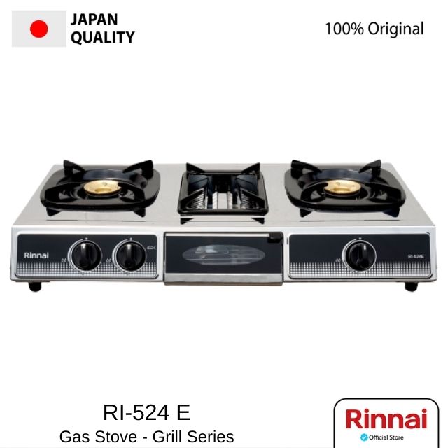 Rinnai Kompor Gas 3 Tungku Dilengkapi Panggangan - RI524E - FREE ONGKIR Jabodetabek