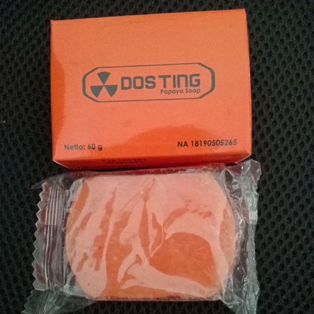 DOSTING PAPAYA SOAPDiformulasikan dengan Ekstrak Buah Pepaya yang memberikan kelembutan diperkaya dengan essential oil pilihan yang bermanfaat membersihkan badan menyegarkan badanmelembabkan kulit dan membantu a badan lebih wangi.POM NA 18190505265NETTO 60 gDemi kenyamanan bersama mohon video awal saat pembukaan paket ya kak (unboxing)Komplain tanpa mengirimkan video unboxing dan komplain lewat dari 1x24 jam setelah paket diterima kami mohon maaf dengan berat hati tidak akan bertanggung jawab atas komplain tersebut.