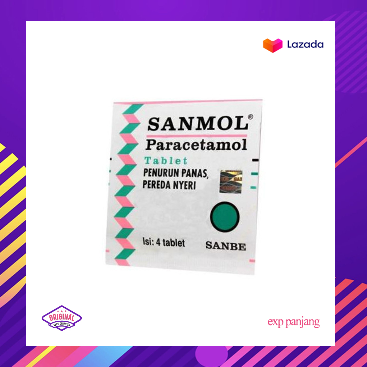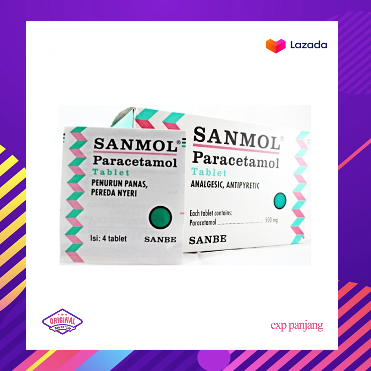 SANMOL merupakan obat dengan kandungan Paracetamol 500 mg. Obat ini digunakan untuk meringankan rasa sakit pada keadaan sakit kepala, sakit gigi dan menurunkan demam. Sanmol bekerja pada pusat pengatur suhu di hipotalamus untuk menurunkan suhu tubuh (antipiretik) serta menghambat sintesis prostaglandin sehingga dapat mengurangi nyeri ringan sampai sedang (analgesik).