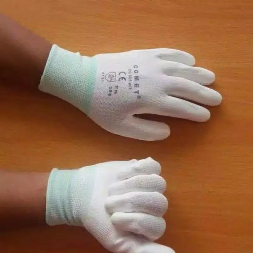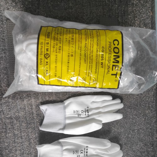 Sarung Tangan Comet Palmfit CG 805 WT Putih Bahan Karet Material Nylon Polyrethane Warna White 1 Pasang / Pair / 2 Buah Kanan-Kiri Size S M L CG805WT - Bayar Ditempat - COD