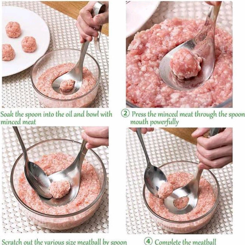 Dengan sendok alat pembuat bakso ini kamu bisa membuat bakso meatball dengan cepat dan praktis tanpa perlu perlu repot serta tangan kamu tidak akan kotor akibat adonan bakso Sendok Pembuat Bakso ini memungkinkan pembuatan bakso meatball tanpa sentuhan tangan sama sekali sehingga hasil dari bakso meatball akan lebih higienis.Dengan Sendok Pembuat Bakso kamu akan menghemat banyak waktu karena Gak perlu lagi menggunakan tangan untuk membentuk adonan bakso. Cukup menggunakan alat pembuat bakso Meatball ini, dengan cara menekan pada adonan bakso, yang mana adonan bakso yg keluar dari lubang sendok, kemudian ambil menggunakan sendok makan dan masukkan ke dalam panci berisi air yg sudah dididihkan.sendok pembuat bakso meatball Ini di buat dengan bahan stainless premium yang tebel sehingga dapat bertahan lama.