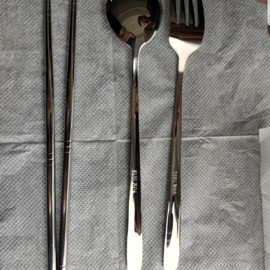 Keterangan Produk :- Material Stainless Steel 304 (100% ANTI KARAT)- Panjang Garpu 21cm- Panjang Sujeo : 21cm- Panjang sumpit 23cm- Model sangat aman dan nyaman digunakan- Simpel dan elegan- Sumpit dengan bagian Kotak diatas sehingga sumpit tidak mudah gelinding pada permukaan datar- BOX penyimpanan yang Praktis memudahkan untuk dibawa-bawa. Box penyimpanan juga bisa digunakan untuk alat makan lainnya- Box terbuat dari plastik tebal dan berkualitas