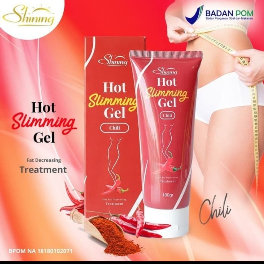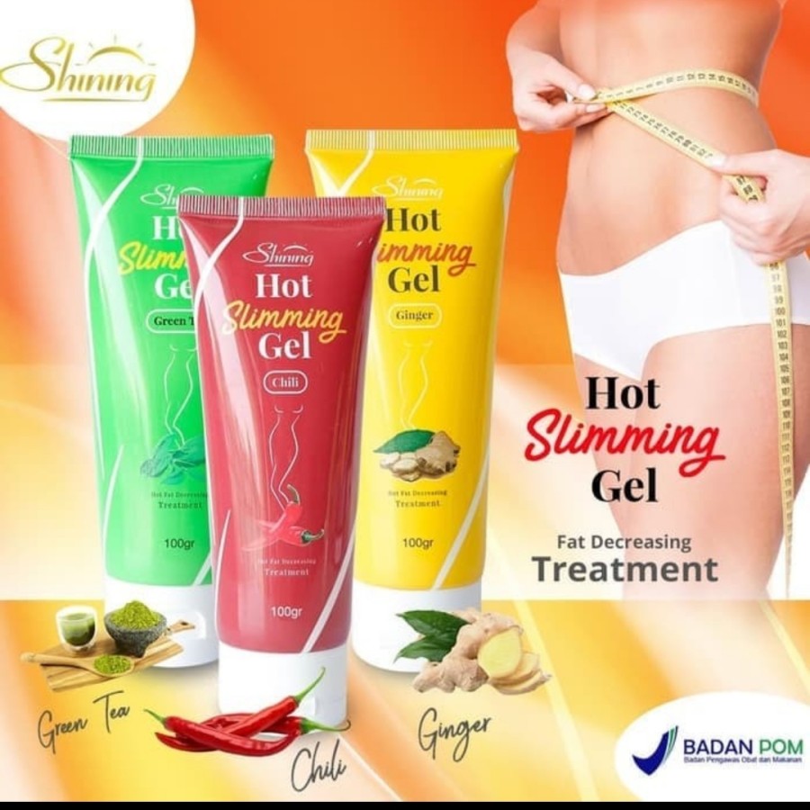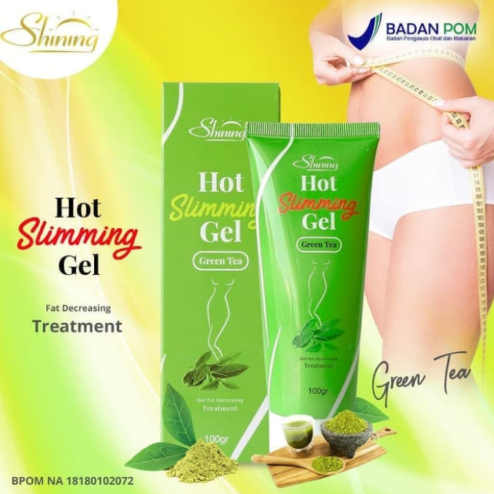 Gel pembakar lemak yang sangat efektif dengan aroma Green Tea. membakar lemak membandel di perut dan di bagain tubuh lainnya dengan efektifOleskan tipis-tipis saja ke bagian tubuh yang ingin dibakar lemaknya, diamkan beberapa saat dan rasakan Shining Slimming Hot Gel ini bekerja memanaskan bagian tubuh tersebut sehingga lemak dibawah kulit bisa terbakar.PERHATIAN :- Awas Kulit Sensitif- Kalau Kulitnya agak tebal, oleskan lebih banyak creamnya- Kalau merasa terlalu panas, berarti pemakaiannya harus dikurangi