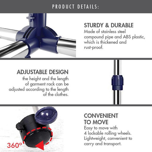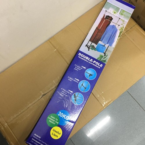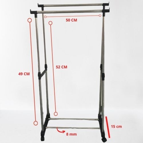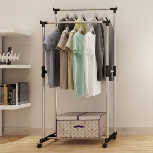 Stand Hanger Double Rak Serbaguna 4 Roda Stainless Steel Baju Portable - Bayar Ditempat - COD