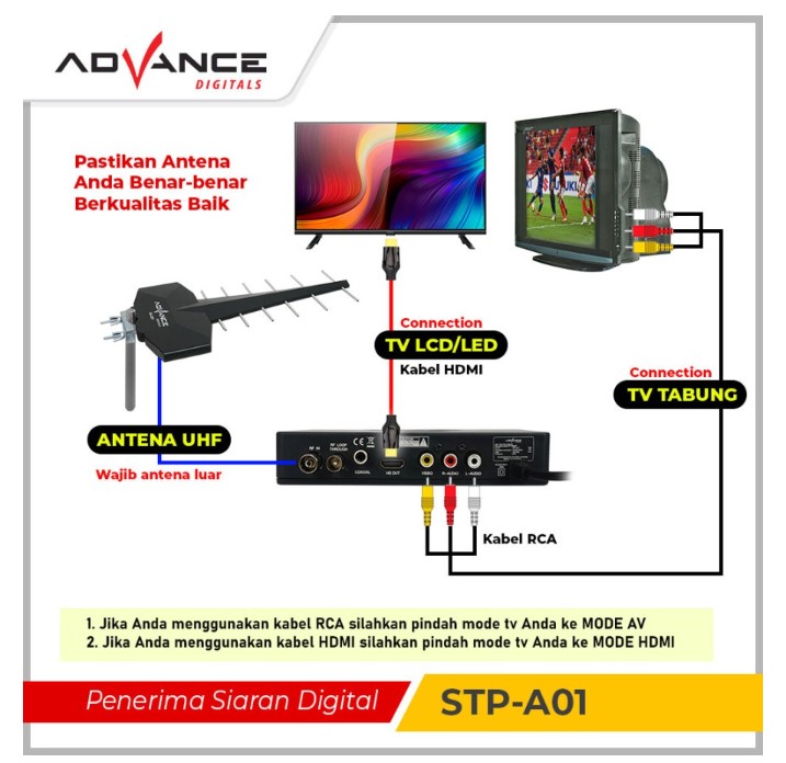 1. Wajib Menggunakan Antena UHF/Digitals Dan Di Outdoor agar hasil lebih baik. (jika saat pencarian sinyal dan kekuatan 0 maka Antena kamu tidak support)