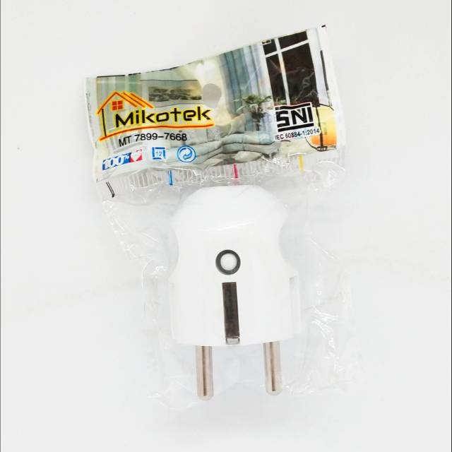 Deskripsi : - Steker Arde - Merek Mikotek - Warna Putih - Bahan kuningan - Bahan luar Plastik - SNI - Tebal dan tidak Mudah Meleleh