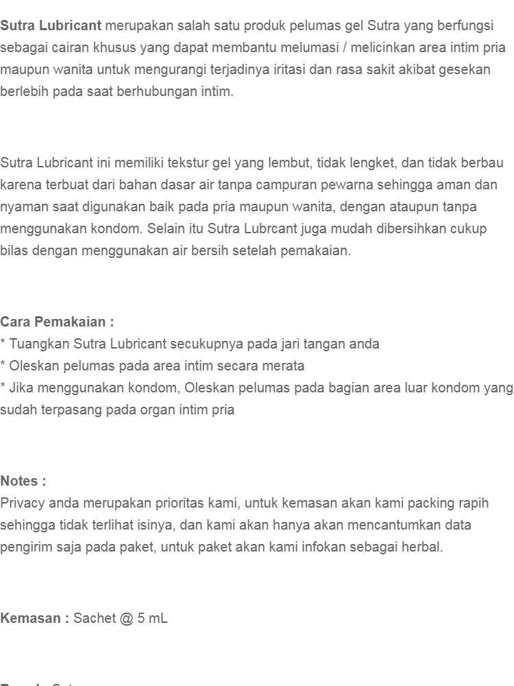 Sutra Lubricant 50 ml / Pelumas / Pelicin / Gel / SUTRA LUBRICANT LEMBUT - HALUS pojokbelanja / BISA BAYAR DI TEMPAT (COD)