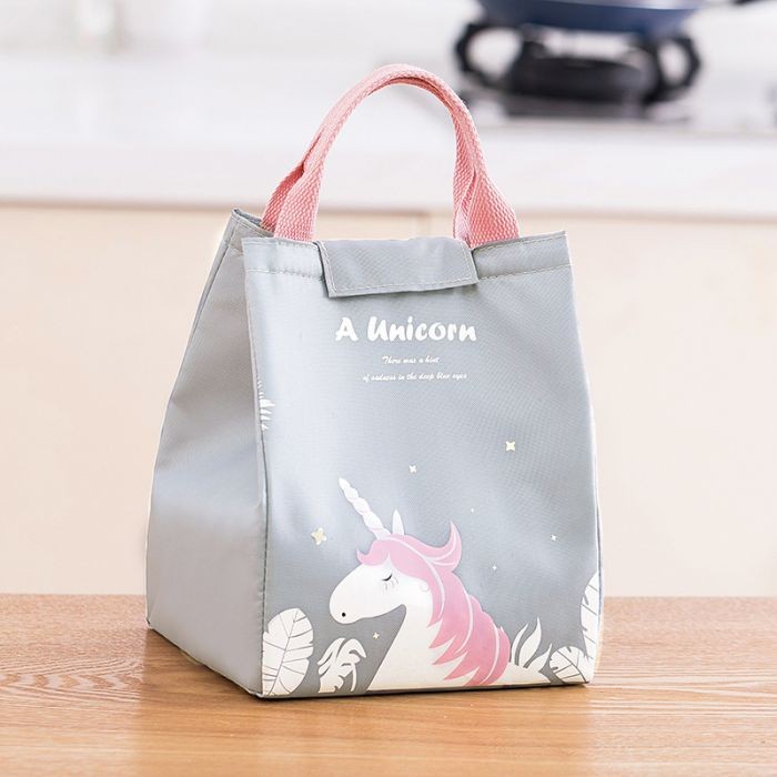 Tas Bekal Lunch Box Set Cooler Bag Unicorn Kotak Makan Termos Panas - GREY Unicorn- Bayar Ditempat - COD - Toko Buibu
