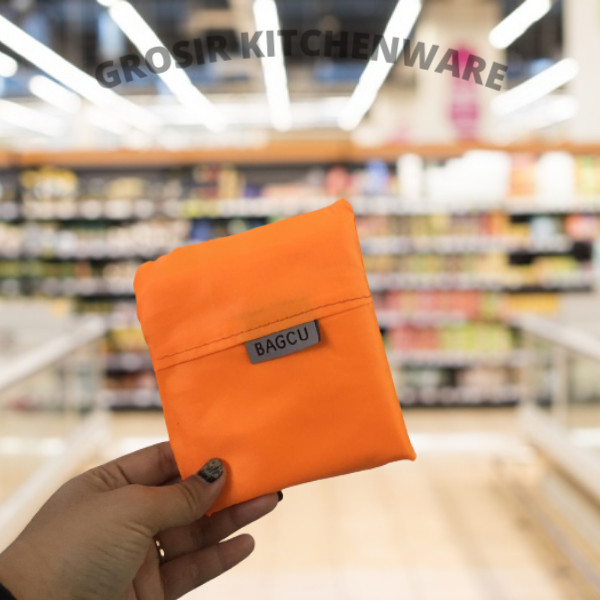 Tas Supermarket Baggu Bagcu Lipat Belanja Shopping Bag Jinjing Kain - Orange - Bayar Ditempat - COD