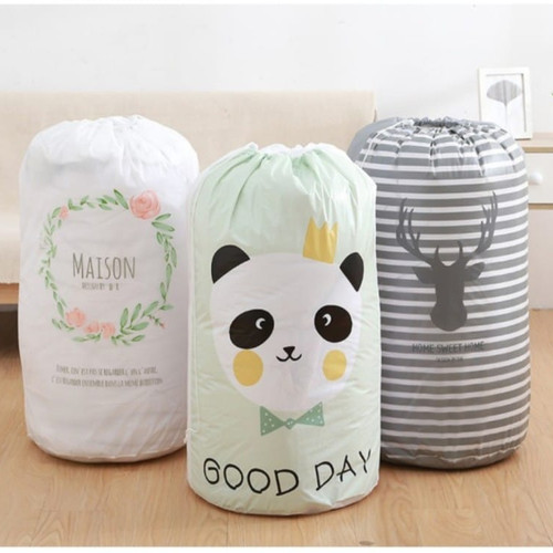 Bedcover yang berukuran besar susah disimpan di dalam lemari, boros tempat, belum lagi lemari yang sudah penuh dengan pakaian yang numpuk dan berserakan solusinya dengan memakai cloth bag. Cloth bag hadir dengan kapasitas yang sangat besar, bisa muat banyak, serta motif menarik. Dengan motif yang menarik, tampilan isi lemari jadi berwarna.Cloth bag keluaran baru ini kapasitasnya sangat besar, muat 2 bedcover ukuran single, juga muat banyak pakaian. Tutup model serut, bisa ditekan hingga kempes.Cloth bag terbuat dari bahan kain plastik halus, bahan cukup tebal.Dengan cloth bag, bedcover dan pakaian jadi tersimpan rapi, bebas debu dan mudah diambil saat dibutuhkan