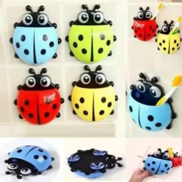 Tempat Sikat Gigi / Odol Kumbang Lucu Unik Motif Kumbang Warna-warni Merah Kuning Biru Hijau Ladybug Lady bug Toothbrush Tooth Brush Holder - Bayar Ditempat - COD