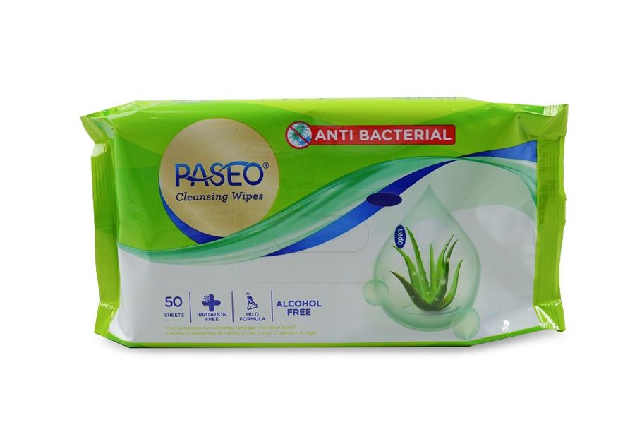 Tissue Basah Paseo 50 Sheets Anti Bacterial 50s Antibacterial Tissu Bayi Anti Bakteri Virus Kuman Kotoran Non Alkohol Iritasi Wajah Muka Pembersih Badan Original Steril - Bayar Ditempat - COD