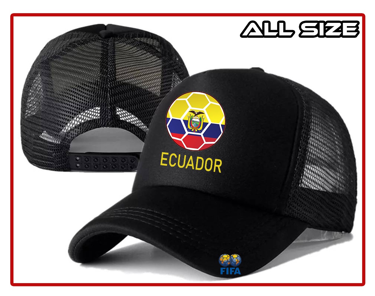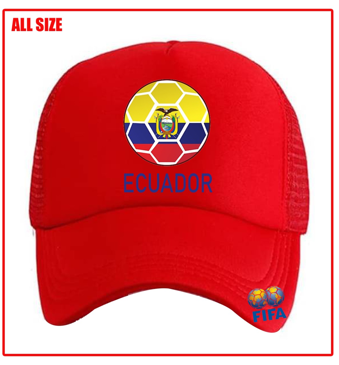 Topi EQUADOR FC Piala Dunia Qatar 2022 Snapback Trucker Jaring Sablon Timnas Equador FC Pria Wanita