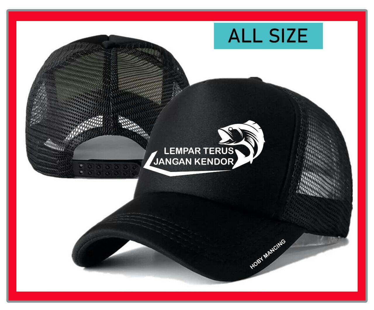 Topi Trucker Jaring Dewasa Black Mancing Lempar Terus Jangan Kendor