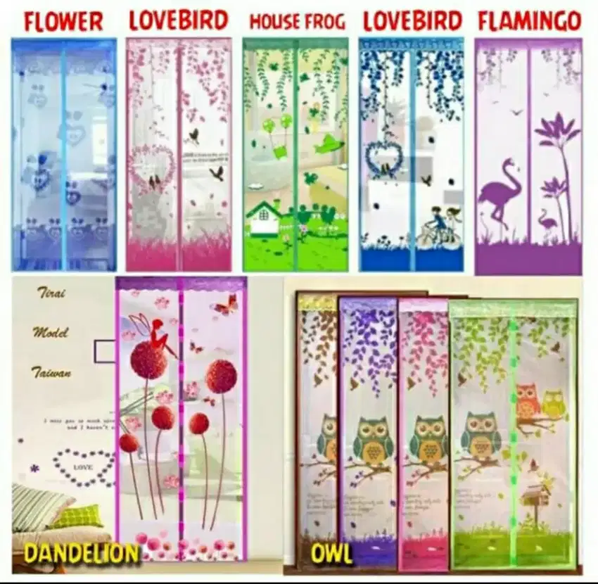 ⫷DJA⫸ Tirai Magnet Anti Nyamuk Karakter Random Motif Kartun Acak Campur Doraemon Hello Kitty Bird Warna Hijau Biru Coklat Merah Ungu - Bayar Ditempat - COD