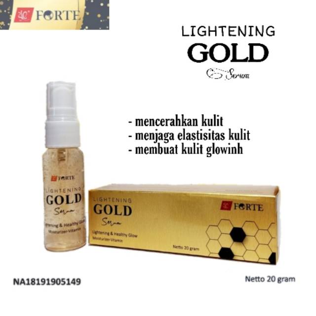 FORTE ] Serum Lightening Gold Kulit Cerah Alami Vitamin C E BPOM 20ml Whitening Antiaging / Keriput Serum Kulit Glowing Original Forte Dus emas Mencerahkan Anti Oksidan Forte By SYB - Bayar Ditempat - COD