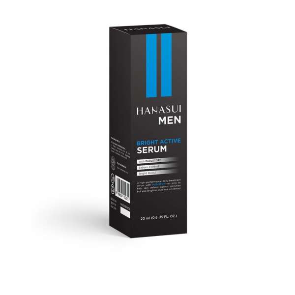 Hanasui Men Bright Active Serum membantu memberikan solusi khususnya kepada pria, serum harian untuk para pria aktif yang sering melakukan aktivitas diluar ruangan, dengan kandungan pollustop, niacinamide, Vitamin C, dan glycerin.