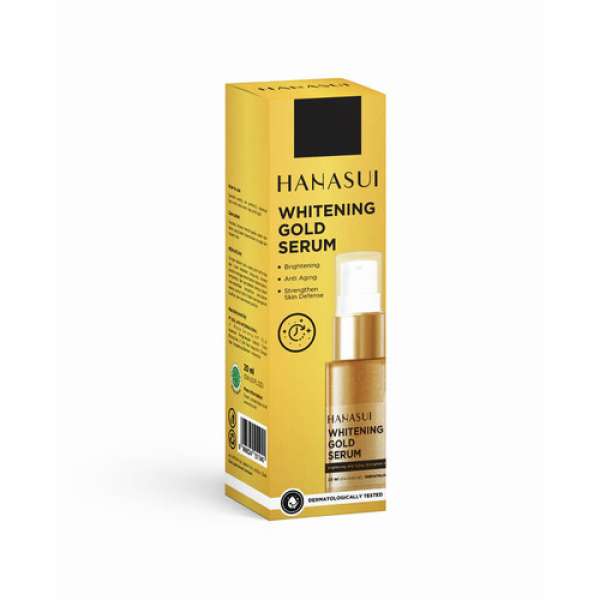 Hanasui Serum Whitening Gold merupakan salah satu produk serum lokal dari brand Hanasui yang memiliki kandungan vitamin C dan vitamin B3 untuk membantu mencerahkan wajah, menjaga elastisitas kulit, serta berperan sebagai antioksidan untuk melindungi kulit wajah dari paparan radikal bebas.