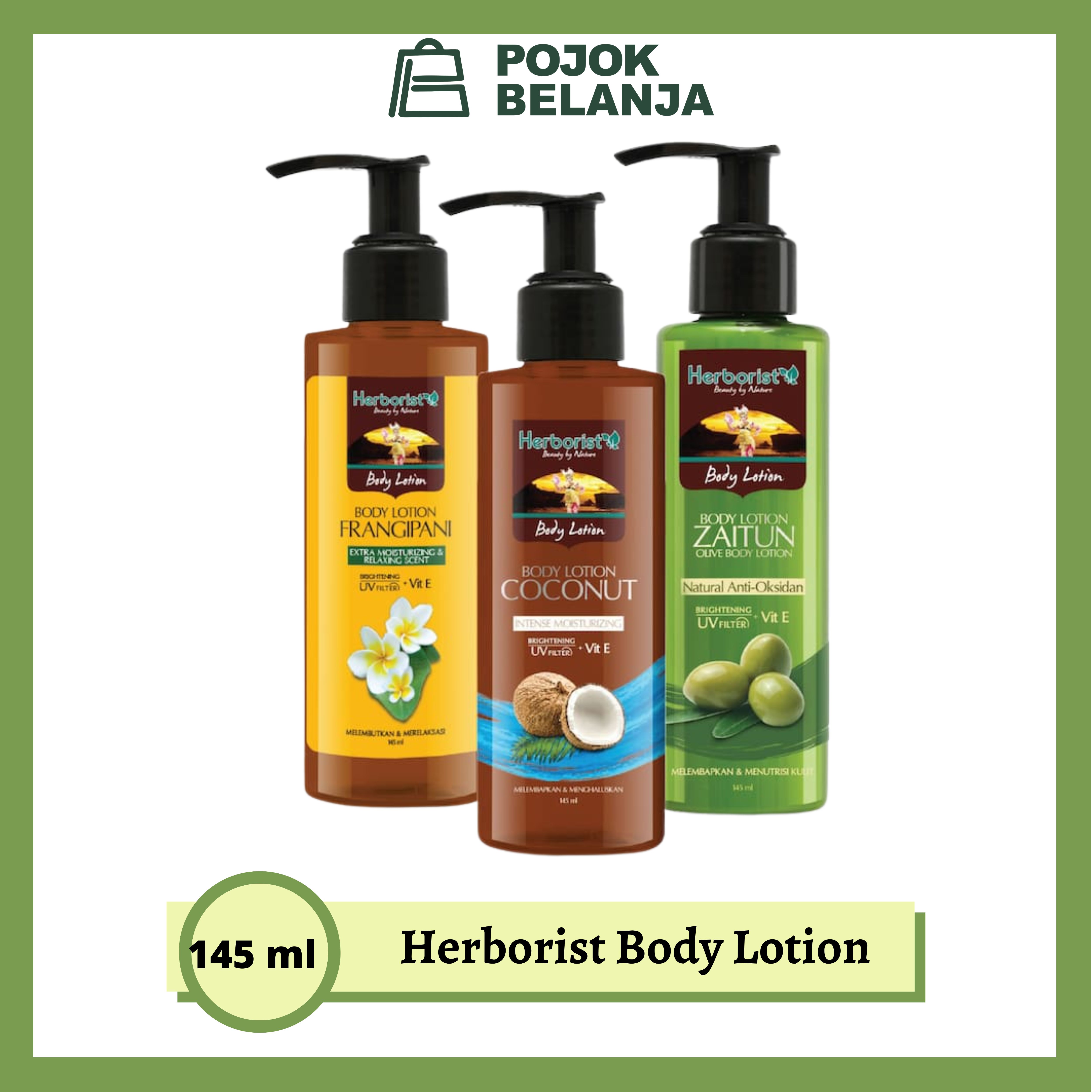 Herborist Body Lotion Zaitun | Coconut | Frangipani | Whitening UV Filter Herboris 145ml | Herboris | Pojokbelanja
