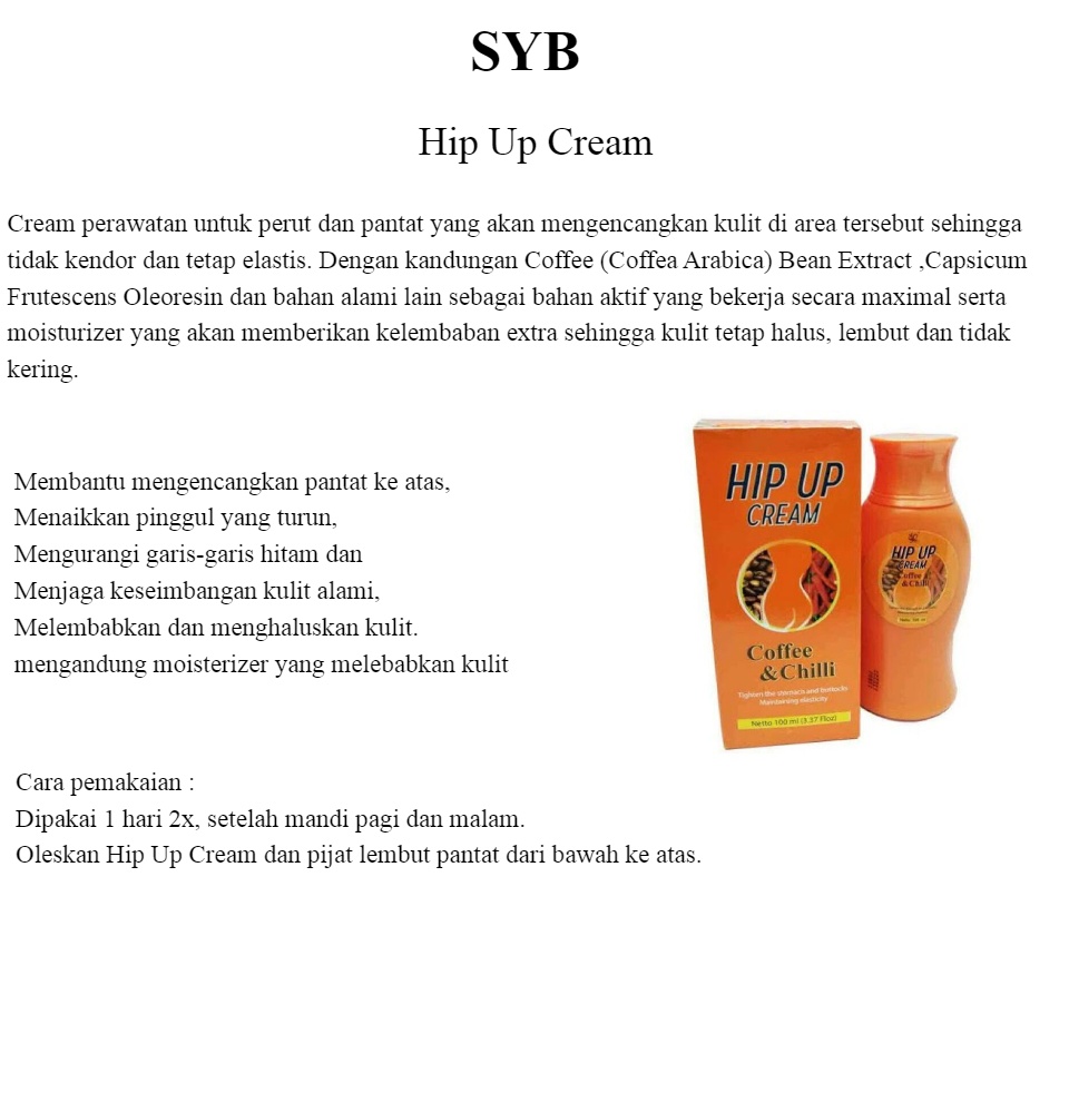 Ini mungkin kamu sedang cari, cek dulu yuk di Toko360, tempatnya Fun Shopping. "HIP UP CREAM BY SYB Origial BPOM Aman 100% - Cream Pelangsing dan Pene.." https://www.toko360.com/p/MTA2Mzgz