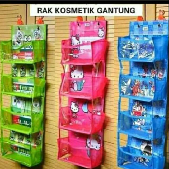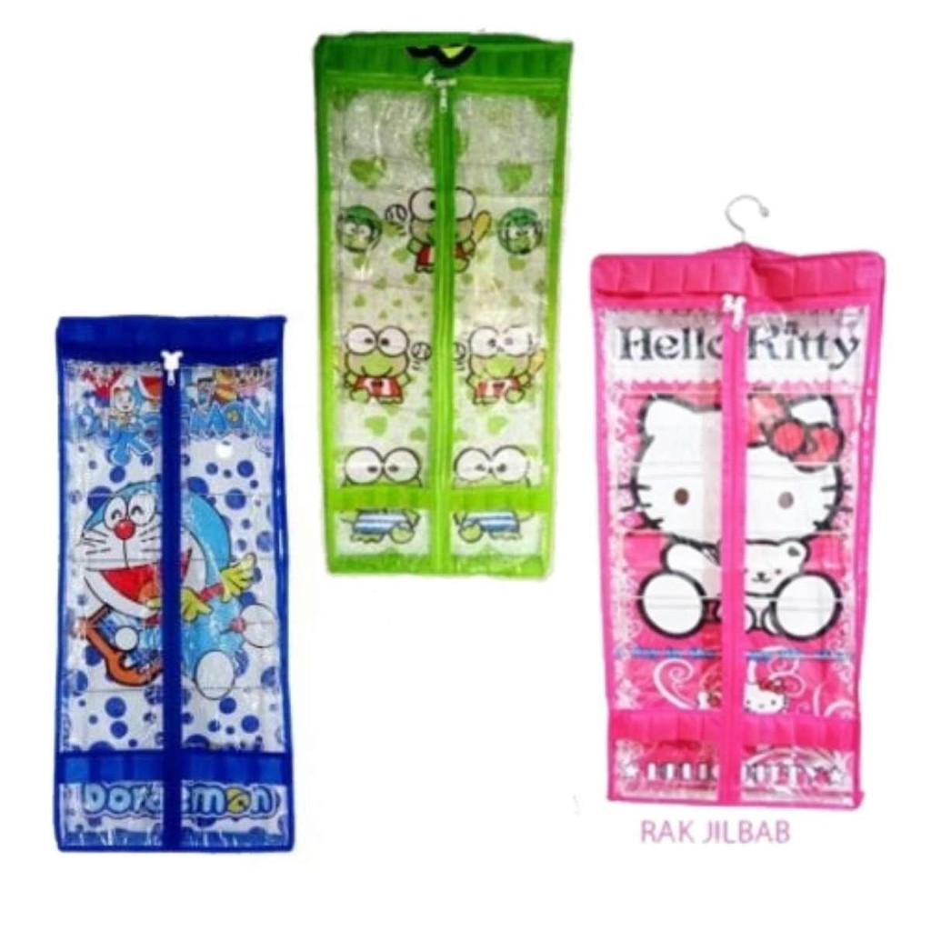 Promo 2 Set Rak Kosmetik + Rak Jilbab / Hijab Multifungsi Karakter Kartun Doraemon, Keropi, Hello Kitty, Warna Biru, Hijau, Merah / Pink Peralatan Kantong Bahan Mika Plastik Karton Tebal Paket 2 in 1 - Bayar Ditempat - COD