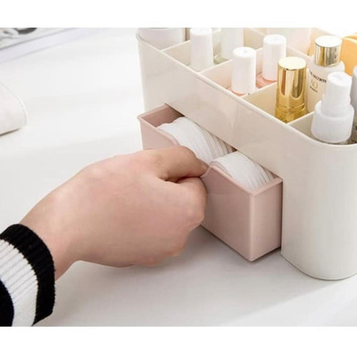MaterialPP PlasticDimensi 22 X 10 X 10.3 CMPerlengkapan kecantikan anda berantakan? Atau Alat-alat dan obat make up sering berserakan? Korean Beauty Cosmetic Box Plastic adalah Kotak Alat Kosmetik Kecantikan yang mampu mengorganize perlengkapkan kecantikan anda.Kotak ini berfungsi untuk membantu Anda menaruh make up, kosmetik, skin care Dan alat tulis kantor lainnya, sehingga lebih rapi dan tertata. Dengan organizer yang rapi membuat Anda dapat menaruh dan mengambil koleksi make up Anda dengan mudah dan cepat.Terbuat dari bahan plastik tebal sehingga tidak mudah rusak dan tidak gampang pecah.- Digunakan untuk menyimpan dan mengatur jam tangan perhiasan dan kosmetik lainnya- Desain laci memastikan bahwa Anda dapat menempatkan dan menyimpan semua kosmetik Anda. Desain minimalis.- Dapat juga digunakan untuk menaruh dan menata alat alat tulis sekolah dan kantor.