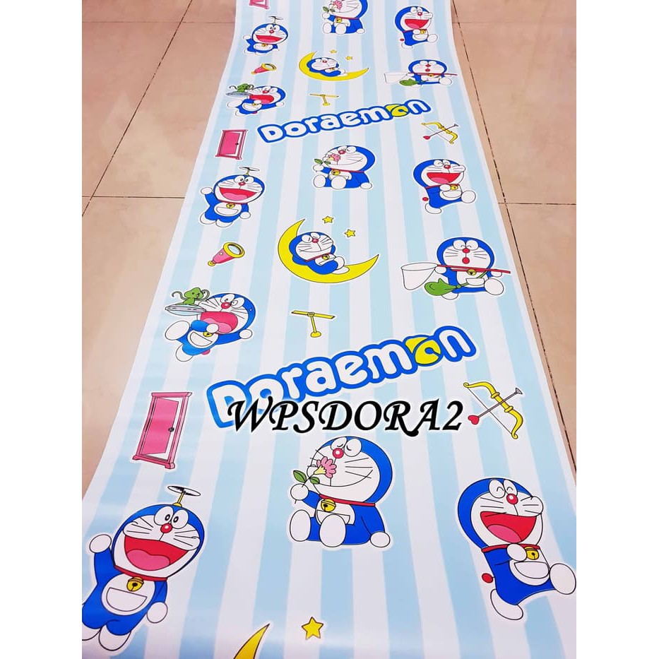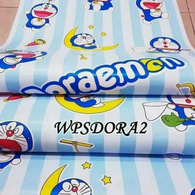 Wallsticker Wallpaper Doraemon Warna Biru Stiker Dinding Motif Dora Bahan PVC Vinyl Tebal Anti Air Glossy Ukuran 45cm x 90cm Motif Salur Garis-garis / Polos / Ulir - Bayar Ditempat - COD